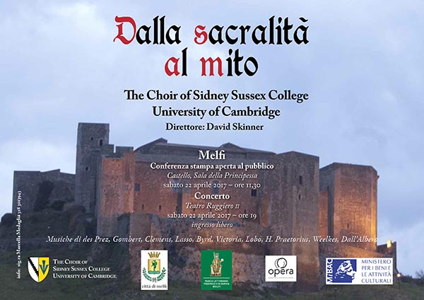 Al Teatro Ruggiero II Sabato 22 Aprile alle ore 19:00 andrà in scena il concerto “Dalla sacralità al mito” tenuto da The Choir of Sidney Sussex College – University of Cambridge diretto dal Maestro David Skinner.
