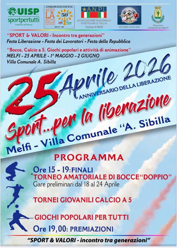 MELFI – Proseguono le celebrazioni del 25 Aprile con “Sport… per la Liberazione!”, a cura del Comitato Territoriale Uisp Aps
