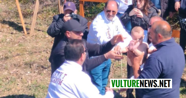 Come da consuetudine, al rintocco delle campane, i piccoli della comunità di sesso maschile sono stati “passati” attraverso un arco ottenuto da un ramo di rovo privato di foglie e spine.