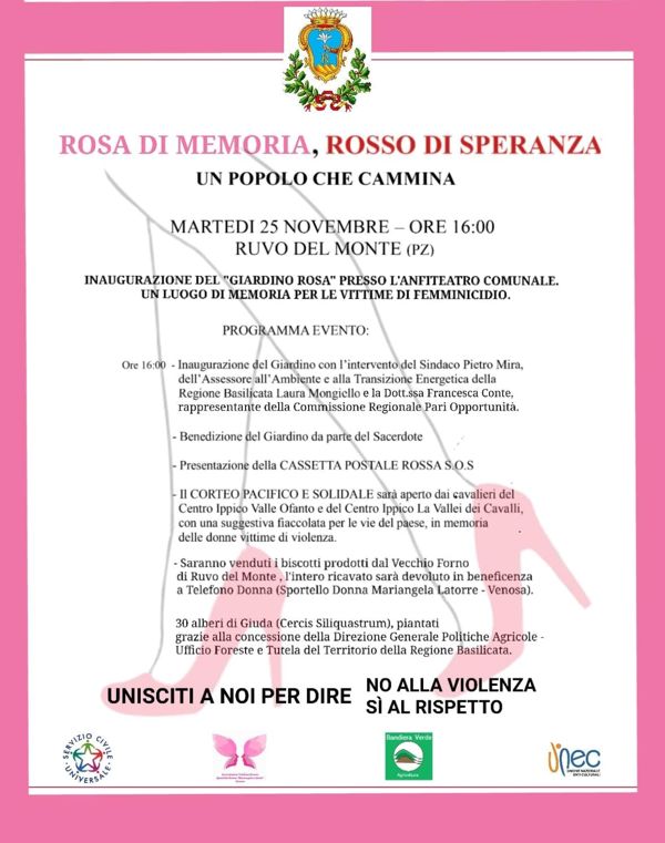 Ruvo del Monte si prepara a inaugurare un nuovo spazio simbolico e carico di significato: il “Giardino Rosa”, un’area dedicata alla memoria delle vittime di femminicidio e alla sensibilizzazione contro ogni forma di violenza di genere.