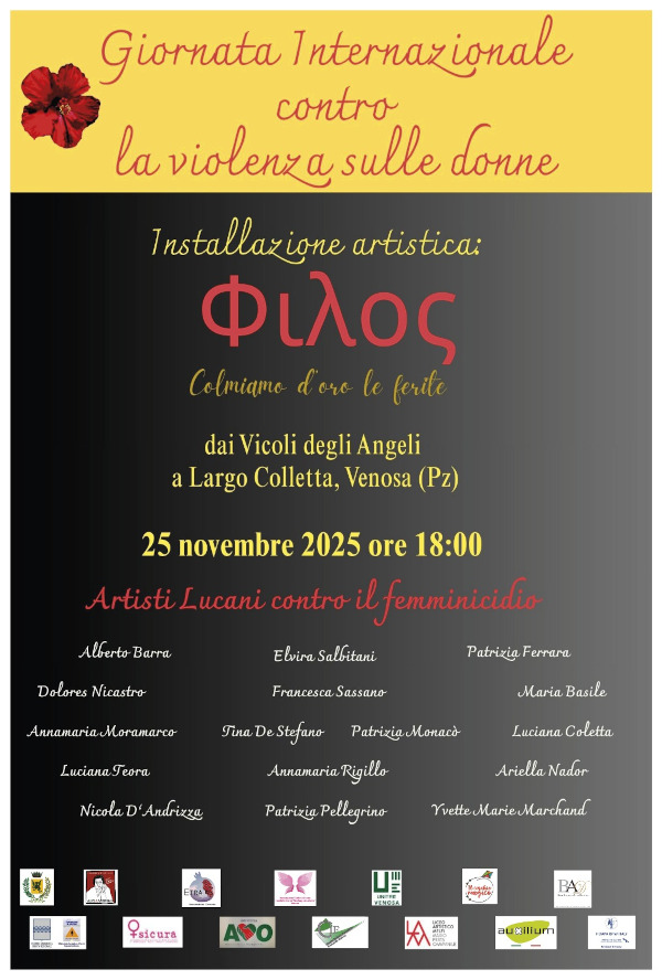 L’Associazione Familiari Antistigma Alda Merini in collaborazione con le comunità psichiatriche di Genzano di Lucania, Maschito, Ripacandida dell’Auxilium, la casa famiglia Il Cerchio Magico, nella giornata del 25 novembre a Venosa dal quartiere dei vicolo degli angeli ricorderanno le vittime di violenza dell’anno 2025: un momento di riflessione collettiva e creativa a cui partecipano cittadini e le varie associazioni del territorio (Unitre, Avo, Etra. ArteDanza Basilicata,laboratorio + Sicura, Sportello Donna Mariange LaLatorre, Fidapa , Cif) sensibili al tema della violenza di genere con la partecipazione anche degli studenti del Liceo artistico di Melfi e con artisti e scrittori lucani (per dire no alla violenza di genere).