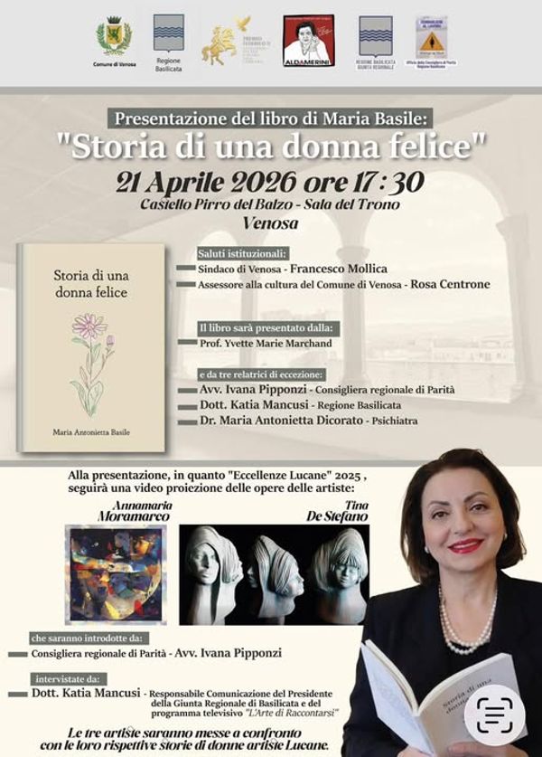 Il Comune di Venosa è lieto di invitare la cittadinanza a un importante appuntamento culturale il 21 Aprile 2026 alle ore 17:30 nel Castello Pirro del Balzo – Sala del Trono.