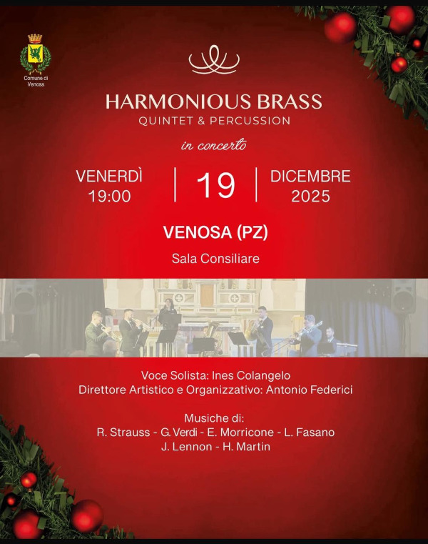 Alle Ore 19:00 – Sala Consiliare – HARMONIOUS BRASS – Quintet & Percussion in concerto