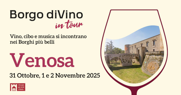 Si terrà a Venosa, la città di Orazio, l’ultimo dei ventidue appuntamenti di Borgo diVino in tour, il ciclo di eventi dedicato alle eccellenze enologiche e gastronomiche locali e nazionali nel circuito de “I Borghi più belli d’Italia” (un borgo per regione per un totale di 20 tappe) che ha visto quest’anno l’aggiunta di 2 tappe estere:
