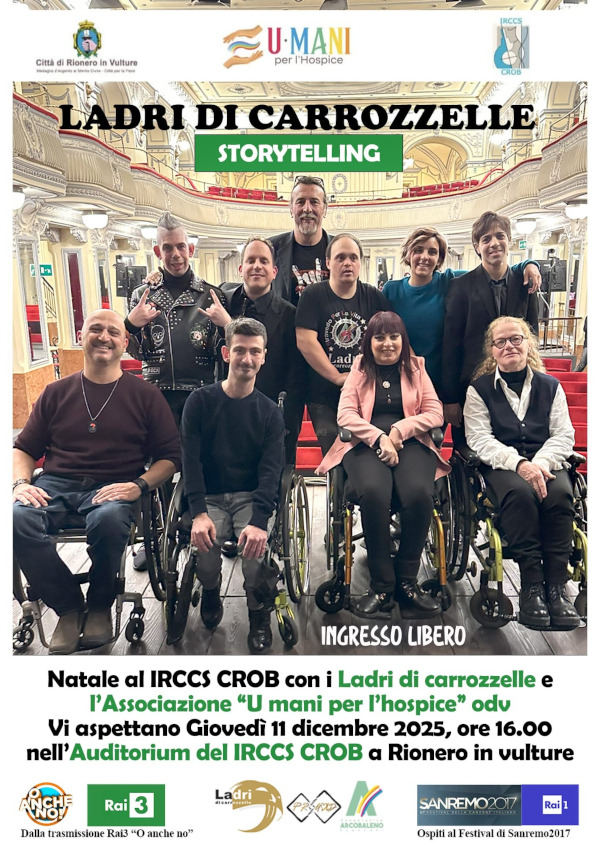 Giovedì 11 dicembre alle ore 16 la musica e l’allegria saranno protagoniste nell’auditorium dell’Irccs Centro di Riferimento Oncologico della Basilicata con il concerto dei Ladri di Carrozzelle.