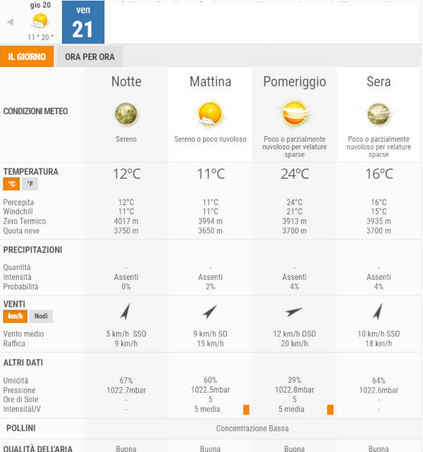 La temperatura massima registrata pare che sarà di 24°C, la minima di 11°C.