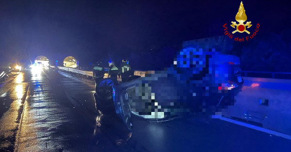 Secondo le prime ricostruzioni, il ribaltamento sarebbe avvenuto presumibilmente a causa delle avverse condizioni meteo che hanno reso la carreggiata scivolosa.