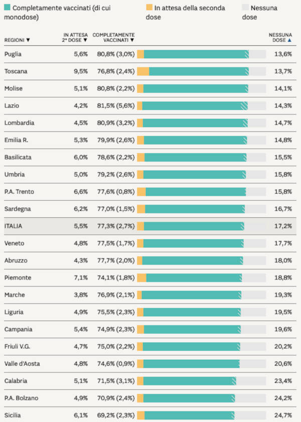 Siamo, ormai, a quasi l’80% della popolazione vaccinabile che ha completato il ciclo“.
