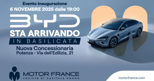 L’arrivo di BYD in Basilicata rappresenta un traguardo strategico per Motor France e per l’intero territorio.