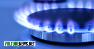 Blue gas flame on the hob close up** Note: Shallow depth of field