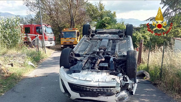 I Vigili del fuoco sono intervenuti con una autopompa ed un fuoristrada per un totale di cinque unità ed hanno messo in sicurezza il mezzo coinvolto nell’incidente.