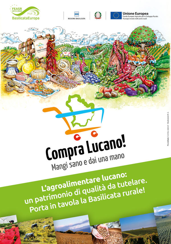 Con questa immagine ad effetto, semplice ed immediata, il Dipartimento Politiche Agricole e forestali della Regione Basilicata ha lanciato dallo scorso aprile la campagna promozionale “Compra lucano! Mangi sano e dai una mano”, per dar merito alla filiera agricola e agroalimentare lucana che è tra i pochi settori produttivi ad aver garantito, sempre, l’approvvigionamento di cibo.