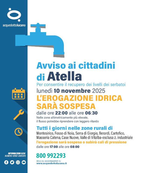 Il contributo di ogni cittadino è fondamentale: comportamenti responsabili nell’uso dell’acqua, evitando sprechi e utilizzando la risorsa con particolare attenzione”.