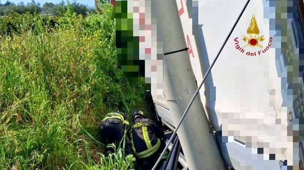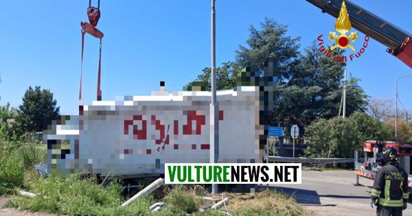 Sul posto è stato necessario l’invio di un’autogru dei Vigili del Fuoco per il recupero del mezzo pesante e la messa in sicurezza dell’area.