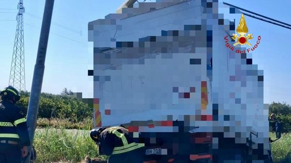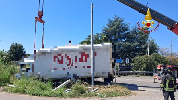 Sul posto è stato necessario l’invio di un’autogru dei Vigili del Fuoco per il recupero del mezzo pesante e la messa in sicurezza dell’area.