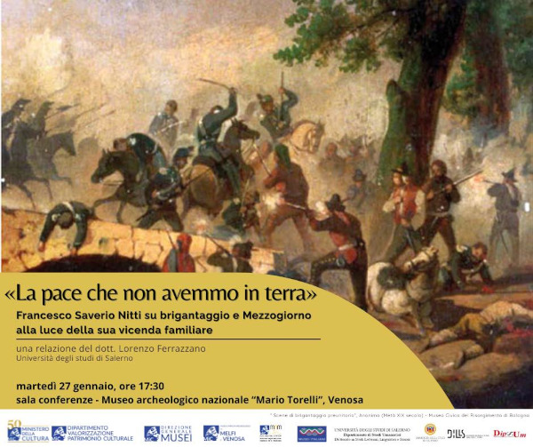 I Musei e parchi archeologici di Melfi e Venosa promuovono il secondo incontro del ciclo di approfondimenti storici, dal titolo “La pace che non avemmo in terra” – Francesco Saverio Nitti su brigantaggio e Mezzogiorno alla luce della sua vicenda familiare.