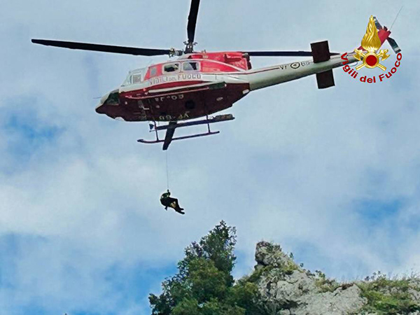 Per il recupero della cagnolina Pamela è stato richiesto il supporto del Nucleo Volo di Salerno che è intervenuto con l’elicottero Drago69.
