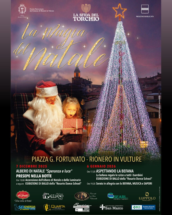 Anche quest’anno, l’Associazione 𝗟𝗮 𝗦𝗳𝗶𝗱𝗮 𝗱𝗲𝗹 𝗧𝗼𝗿𝗰𝗵𝗶𝗼 rinnova il suo impegno per regalare alla comunità di Rionero momenti di gioia e condivisione durante le festività natalizie.