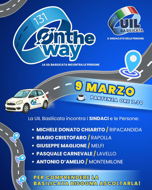 La UIL Basilicata continua il suo viaggio tra i territori con ØntheWay 131 UIL l’iniziativa che porta il sindacato direttamente tra le persone, nei comuni e nelle comunità della nostra regione.