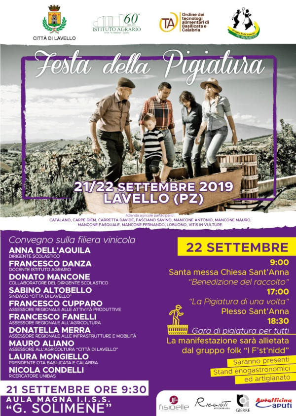 – il 21 Settembre, data in cui è previsto un convegno all’Istituto Agrario di Lavello e celebrazione dei 60° anno.