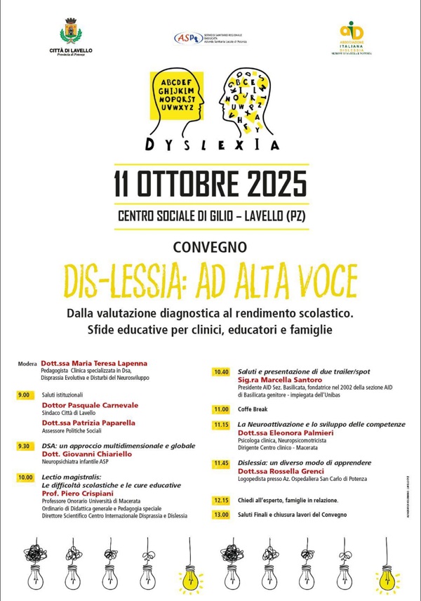 Evento patrocinato dal Comune di Lavello, dall’ASP e dall’Associazione Nazionale Dislessia.