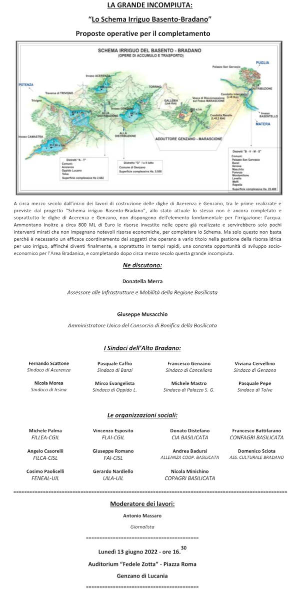 “LA GRANDE INCOMPIUTA”: “Lo Schema Irriguo Basento-Bradano”.