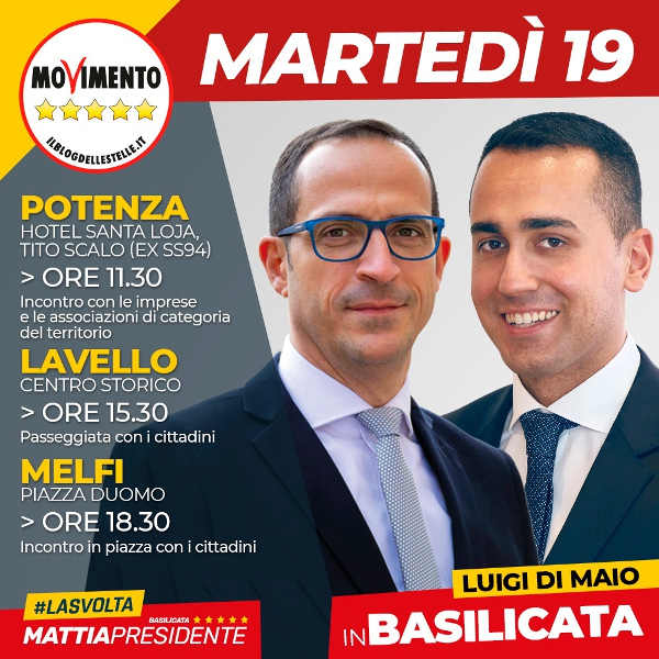Oggi, domani e Martedì 19 Marzo, in Basilicata si svolgeranno una serie di importanti eventi del M5S.