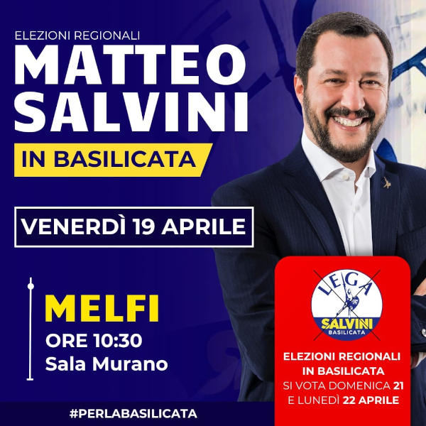“Venerdì mattina 19 Aprile alle ore 10:30 presso la Sala del Ristorante Murano, ci verrà a trovare il nostro Ministro dei Trasporti e delle Infrastrutture Matteo Salvini.