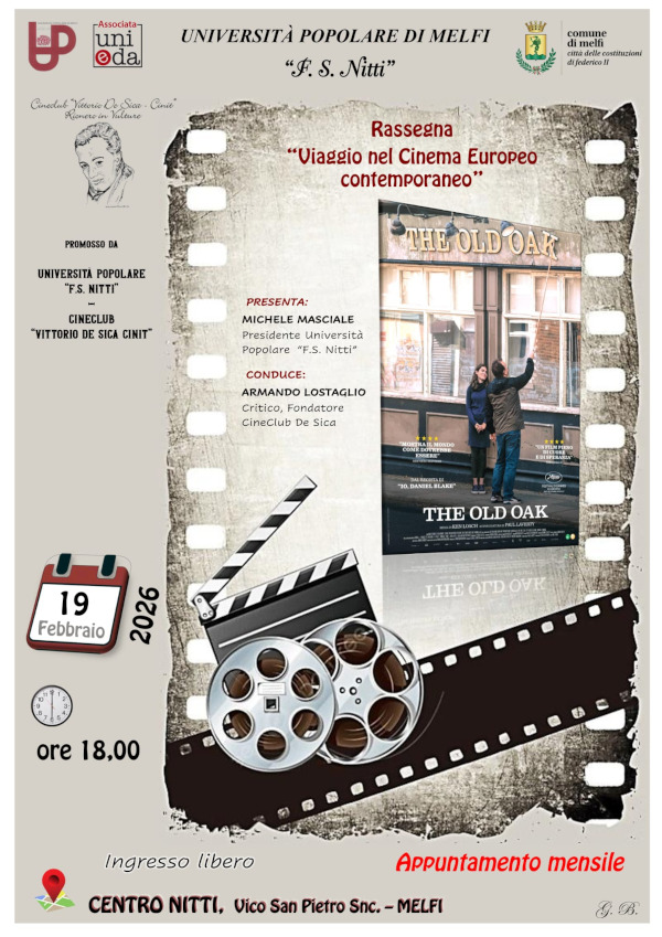 Il 19 febbraio 2026 ore 18:00 il secondo appuntamento della rassegna: luci spente in sala per fare scorrere sul grande schermo la pellicola di The Old Oak (La vecchia quercia, 2023), ultimo capolavoro del regista inglese Ken Loach.