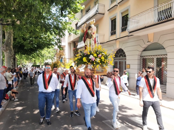 Ha poi preso il via in mattina il Corteo storico con oltre 200 figuranti e due statue sacre con il carro trainato da buoi.