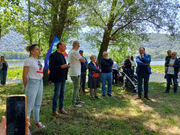 I partecipanti si sono incontrati presso il parcheggio del Lago Grande di Monticchio con la bandiera multicolore della PACE.