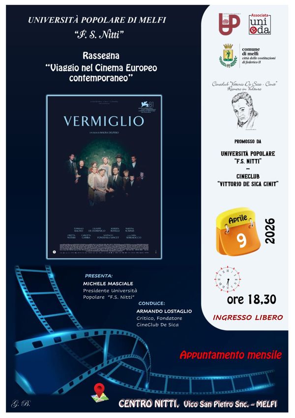 Prosegue la Rassegna cinematografica Viaggio nel Cinema europeo, promossa dall’Università Popolare F. S. Nitti e dal CineClub Vittorio De Sica Cinit, con il patrocinio del Comune di Melfi.