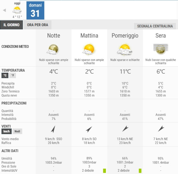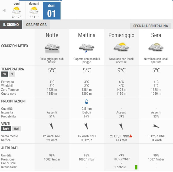 La temperatura massima registrata pare che sarà di 11°C, la minima di 2°C.