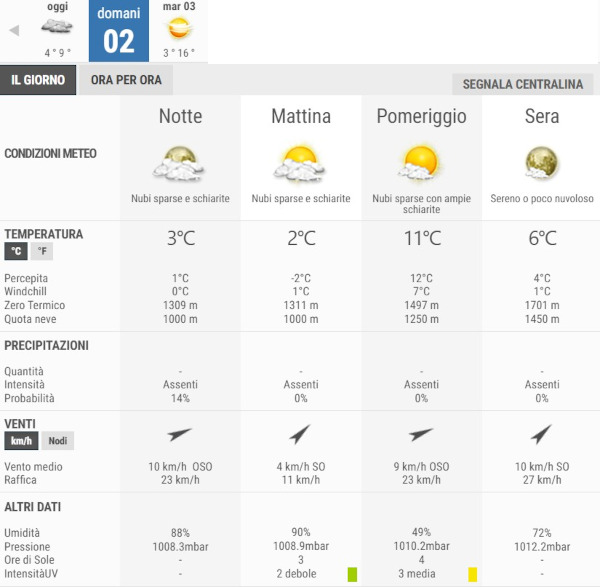 La temperatura massima registrata pare che sarà di 11°C, la minima di 2°C.