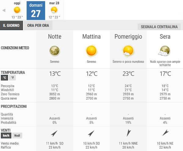 La temperatura massima registrata pare che sarà di 23°C, la minima di 12°C.