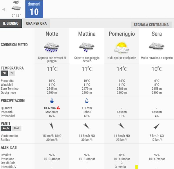 La temperatura massima registrata pare che sarà di 14°C, la minima di 10°C.