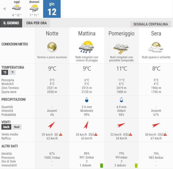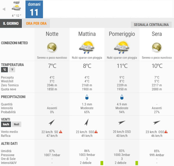 La temperatura massima registrata pare che sarà di 11°C, la minima di 8°C.