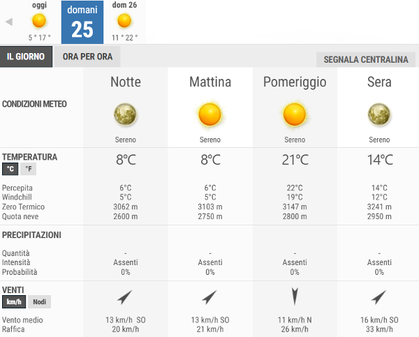 La temperatura massima registrata pare che sarà di 21°C, la minima di 8°C.