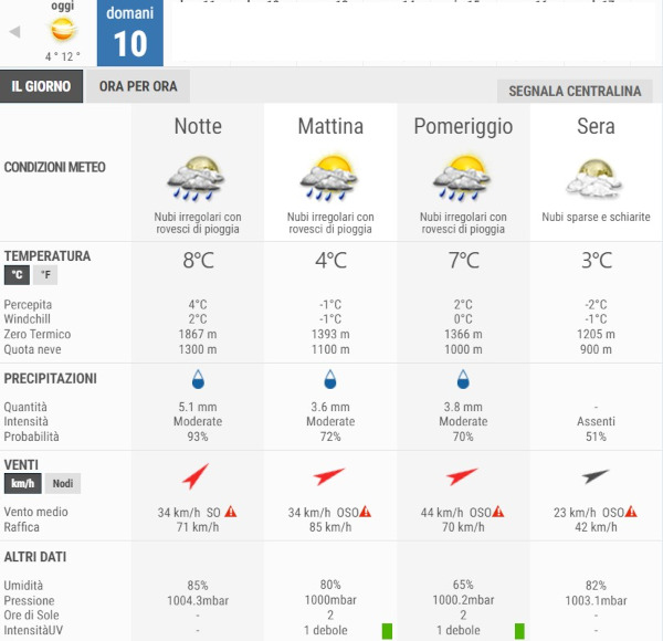 In attesa di ulteriori aggiornamenti, ecco la situazione meteo complessiva con in dettaglio le previsioni per la giornata di domani.