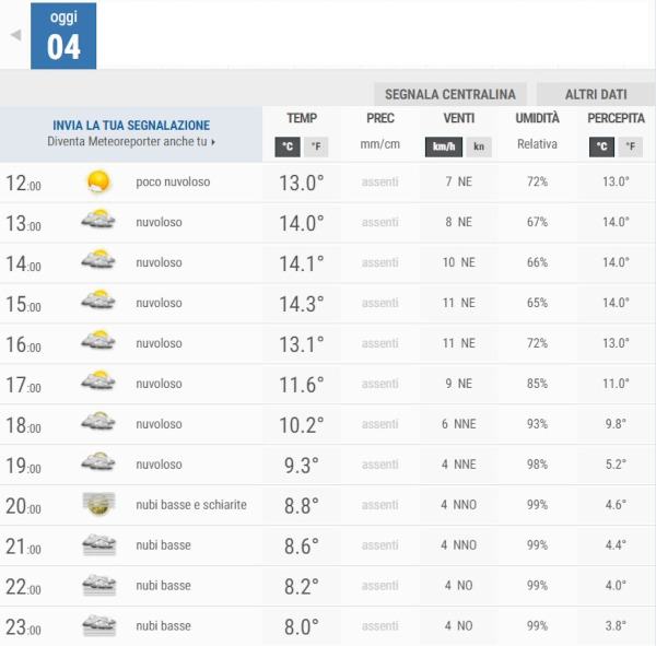 La temperatura massima registrata pare che sarà di 12°C, la minima di 7°C.