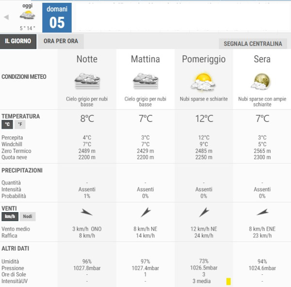 La temperatura massima registrata pare che sarà di 14°C, la minima di 5°C.