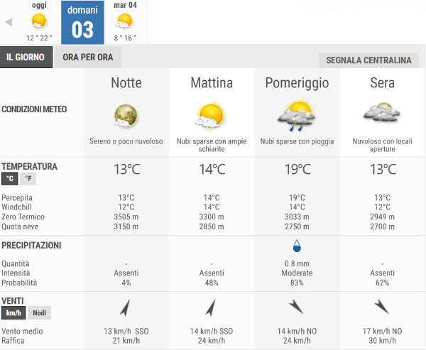 Invece, martedì 4 Novembre avremo giornata in prevalenza soleggiata, salvo presenza di nubi sparse al mattino, non sono previste piogge.