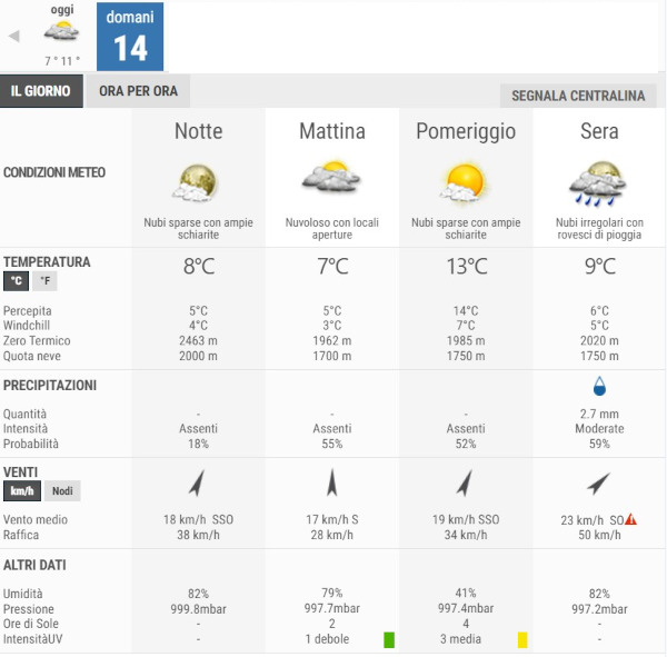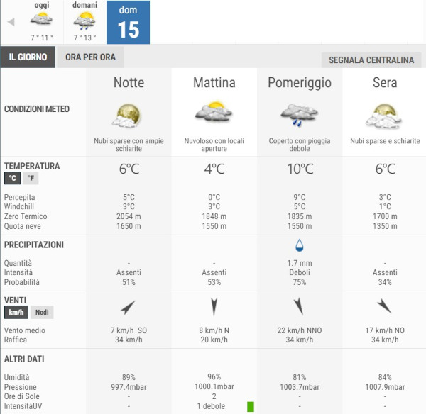 La temperatura massima registrata pare che sarà di 13°C, la minima di 7°C.