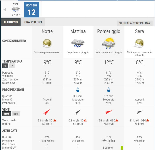 La temperatura massima registrata pare che sarà di 12°C, la minima di 8°C.