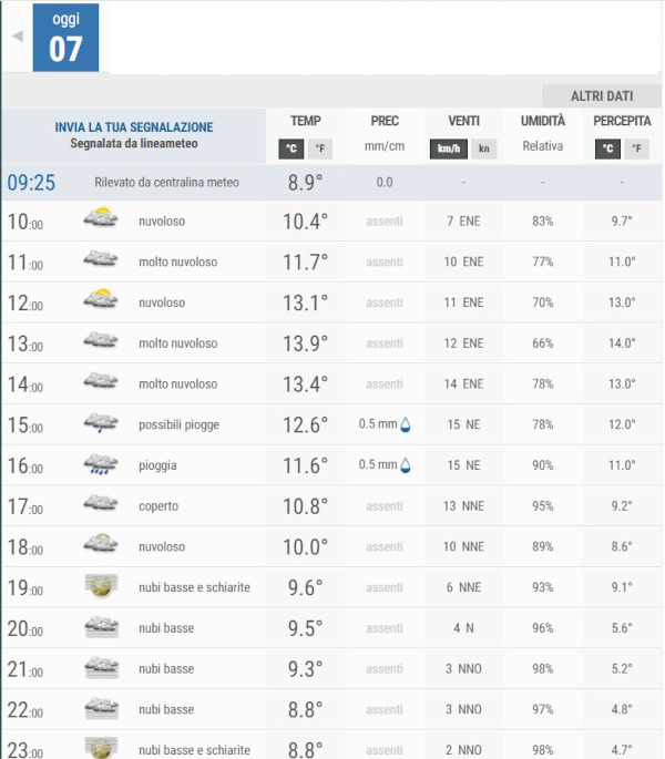 La temperatura massima registrata pare che sarà di 13°C, la minima di 9°C.