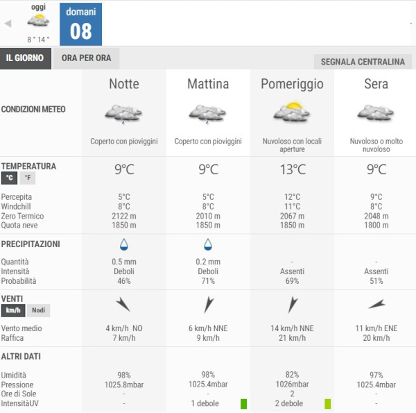La temperatura massima registrata pare che sarà di 14°C, la minima di 8°C.