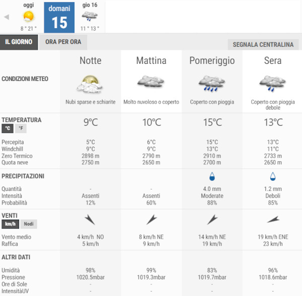 La temperatura massima registrata pare che sarà di 15°C, la minima di 9°C.
