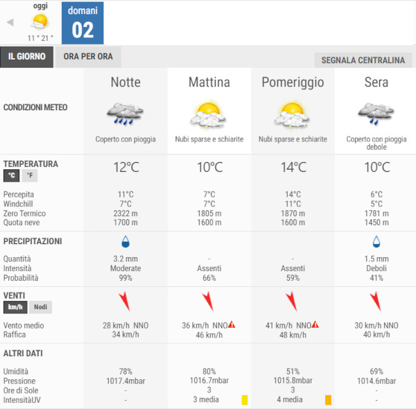 Sabato 4 ottobre probabile breve tregua, in attesa di un nuovo peggioramento per domenica 5 (da confermare).