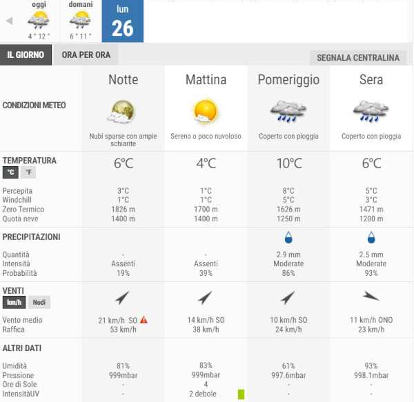Lunedì 26 Gennaio avremo cieli in prevalenza poco nuvolosi, ma con nubi in progressivo aumento e deboli piogge dal pomeriggio.