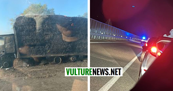 Un brutto incendio ha interessato un camion che trasportava balle di fieno.